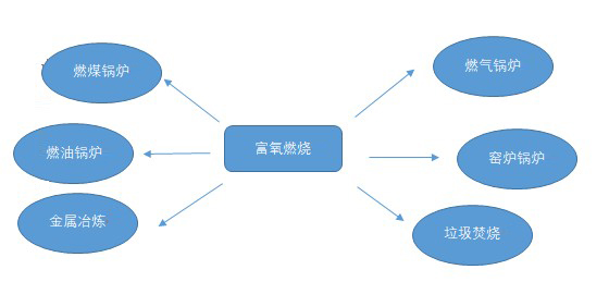 (8)降低污染排放:由于富氧燃燒煙氣量減少,可降低包含CO、CO2等污染物的排放總量。此外,由于使用的空氣中N2降低,使燃燒廢氣中的CO、CO2、SOx、NOx濃度增加,可使CO2捕捉、排煙脫硫脫硝等廢氣處理更有效率。